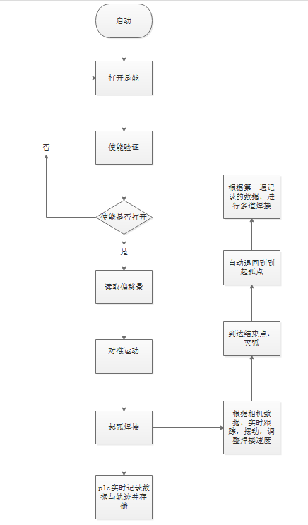 5.再按下原设备的启动按钮,并起弧焊接,直到接收到原设备的结束信号,则自动停止跟踪和焊接;