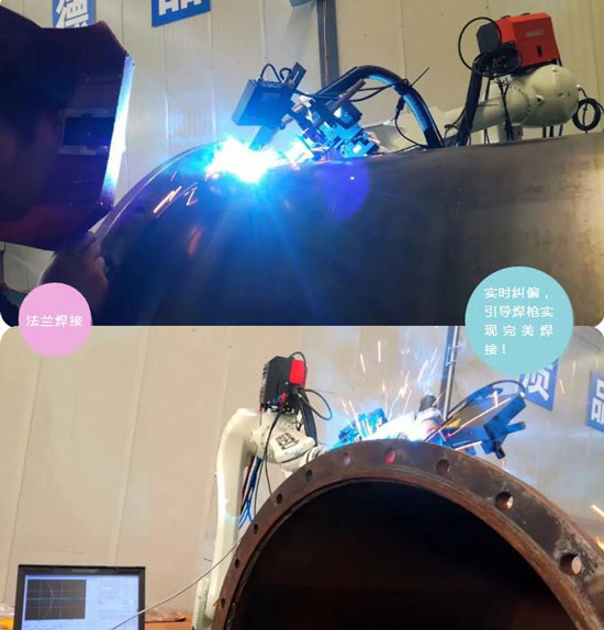 法兰的焊接一般为环缝焊接,创想环缝自动焊接跟踪系统可以适配到焊接专机和焊接机器人中,实现法兰的精准焊接。