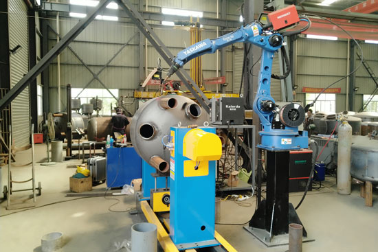 以压力容器为例。大多数压力容器都有一个喷嘴组件。由于焊接的技术特性,传统上只用手工焊接,这是一个多道工序,涉及许多起止点和频繁的重新定位。焊接喷嘴非常苛刻,对于焊工来说,坐在那里手工焊接喷嘴是一个巨大的工作任务。这就是使用机器人自动化的好过程的原因之一。