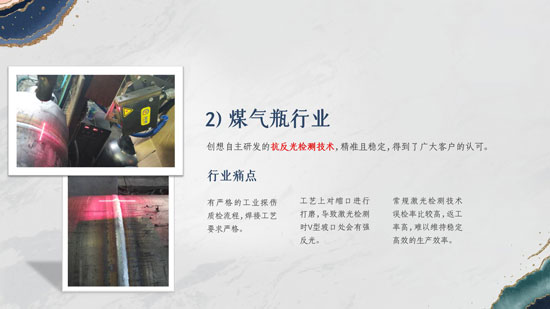 针对环缝焊接行业的各种焊偏问题,我们创想公司推出一款产品叫焊缝跟踪器,它能实时检测焊缝位置并且引导焊枪对准焊缝进行焊接,现在已经广泛应用于以下这些行业,口碑优良。