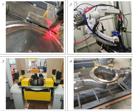 其中的自动焊接部分使用焊接机器人适配ky体育机器人焊缝跟踪系统后,可自动对中、兼容不容规格的工件、适应工件偏差,可保证焊枪始终处于船型、连接板等各种焊缝的焊接位置,一次性连续完成自动焊接。