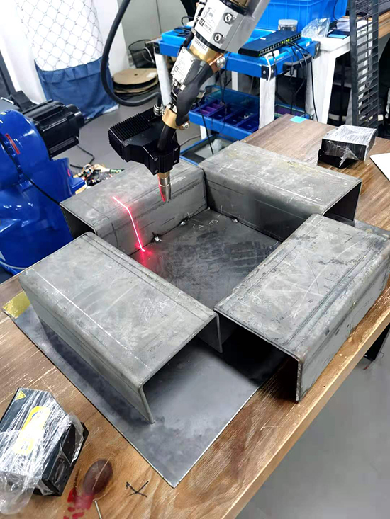 四点寻位是能解决各种复杂结构件焊接的“王牌”,他可以通过两组点位计算出两条直线,由两条空间直线相交形成一个空间交点,准确计算焊接点位的位置,从而计算出整条焊接轨迹,可以很好的解决我们工件同时存在的下料误差,组队误差,拼装误差和摆放误差等,满足客户不同需求