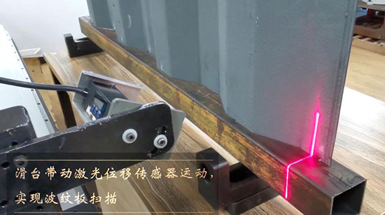 滑台带动激光位移传感器运动,实现波纹板扫描。